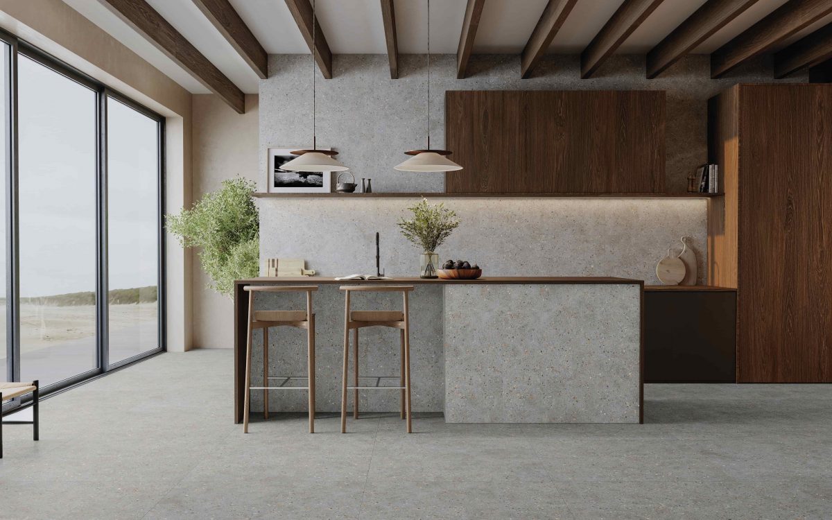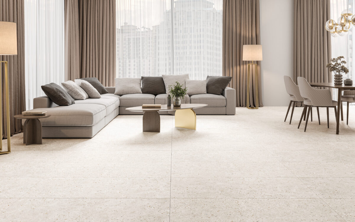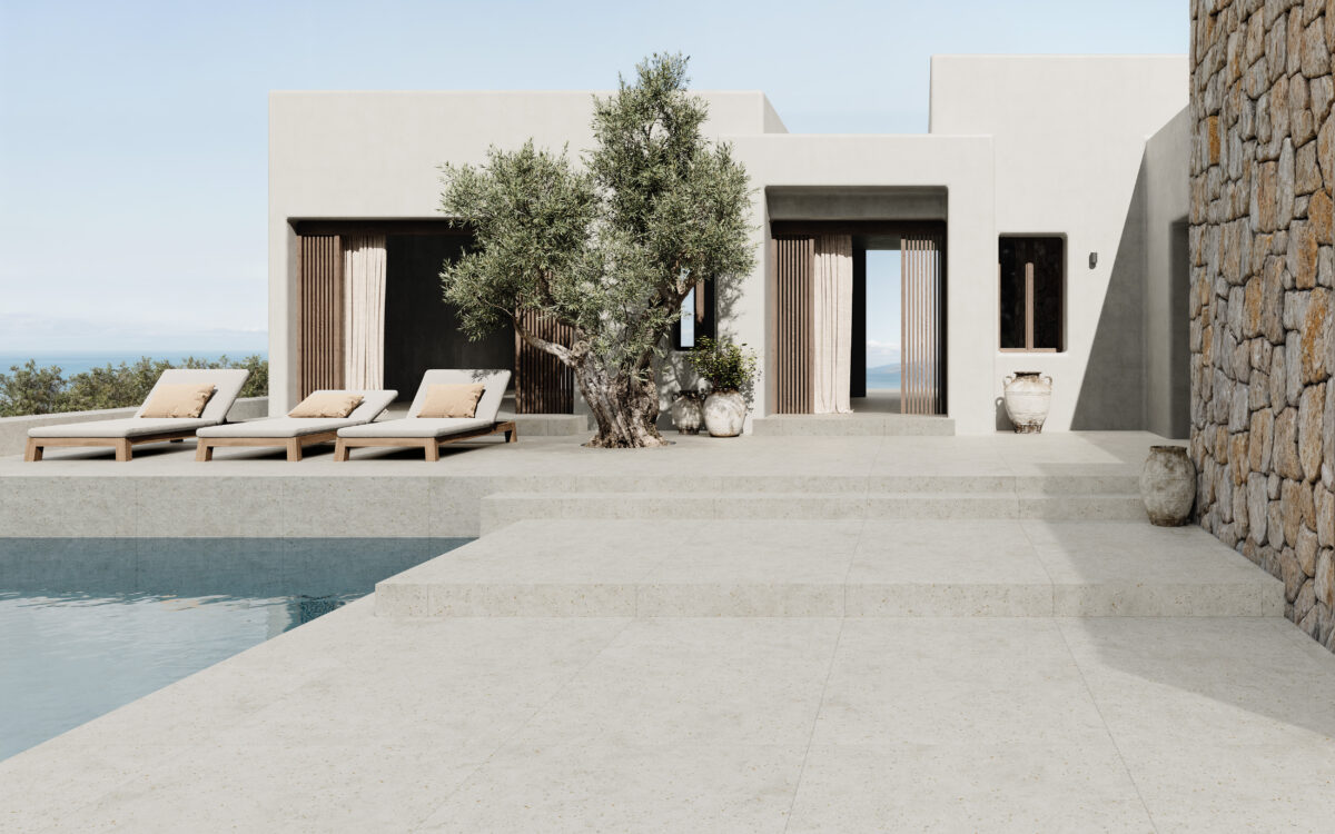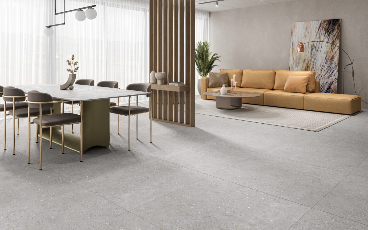 El estilo de nuestra serie Mediterranean se caracteriza por ser un terrazo moderno con escamas coloreadas grises, blancas, doradas y rojizas. Una colección con una estructura con microrelieve de piedra suave y un acabado de granilla de alta resistencia a la abrasión en todos sus colores PEI 4, recomendable para espacios de alto tránsito.