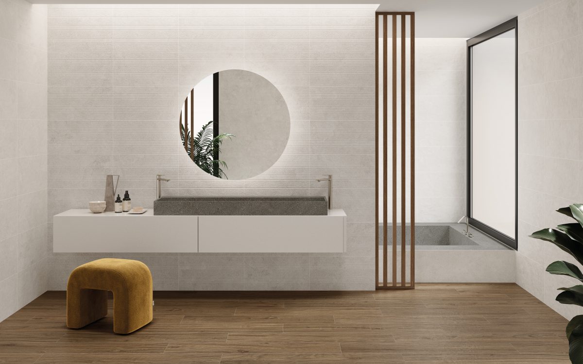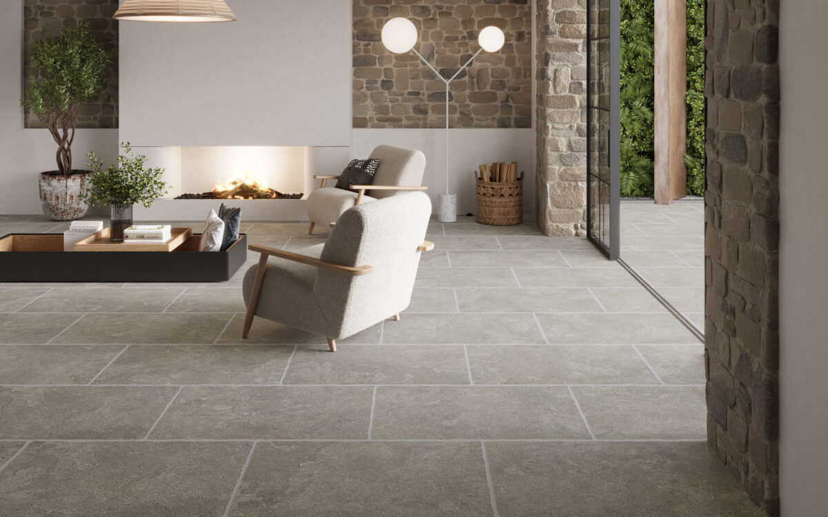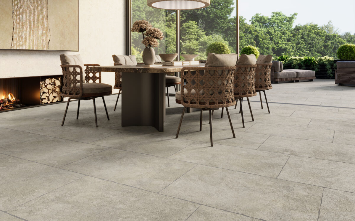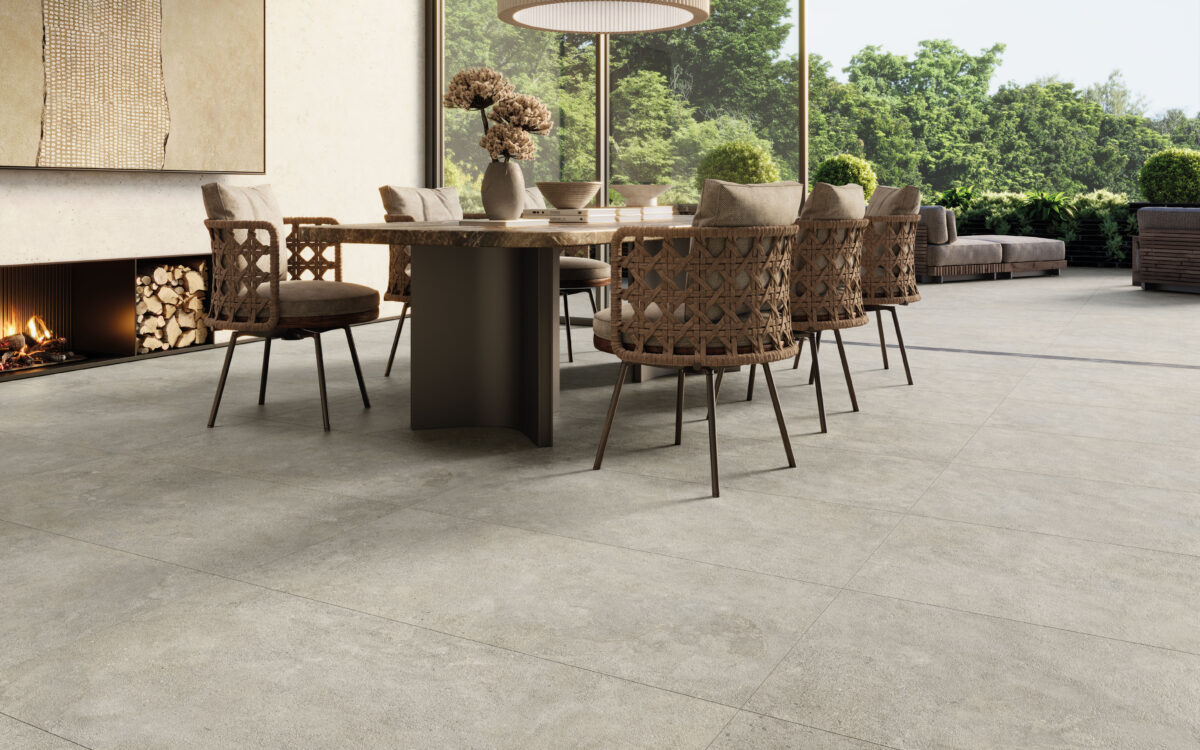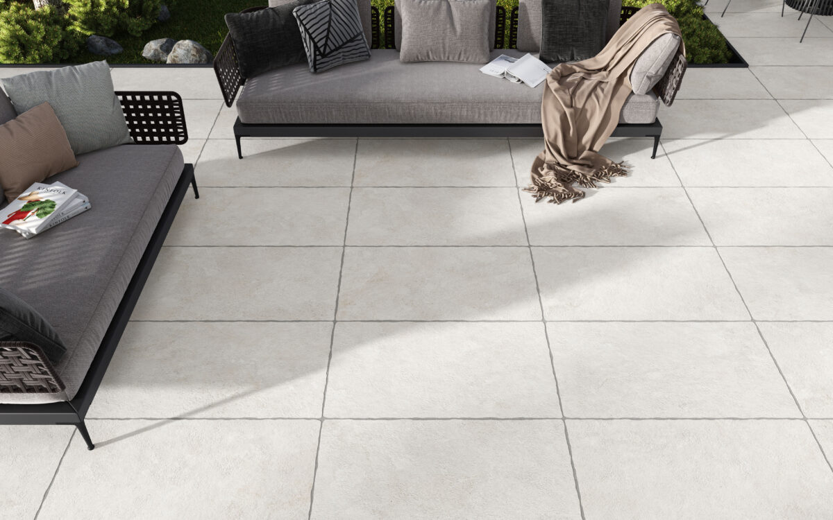 Sa surface est pleine de micro-textures et d’un relief périmétral irrégulier qui la rendent incomparable. Une collection composée de trois tons de couleur (White, Grey et Nature) et d’une version avec une bordure irrégulière, au format 60×90 cm, pour l’intérieur et l’extérieur (OUTDOOR20).