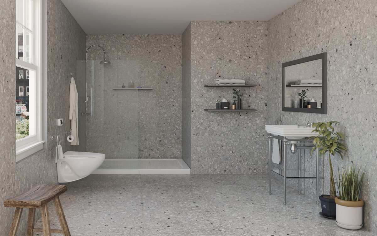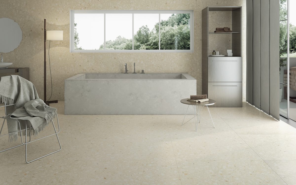 Moon, un terrazzo plein d’expression et de personnalité. Il apporte élégance et naturel aux espaces domestiques, de la salle de bain à l’espace extérieur.