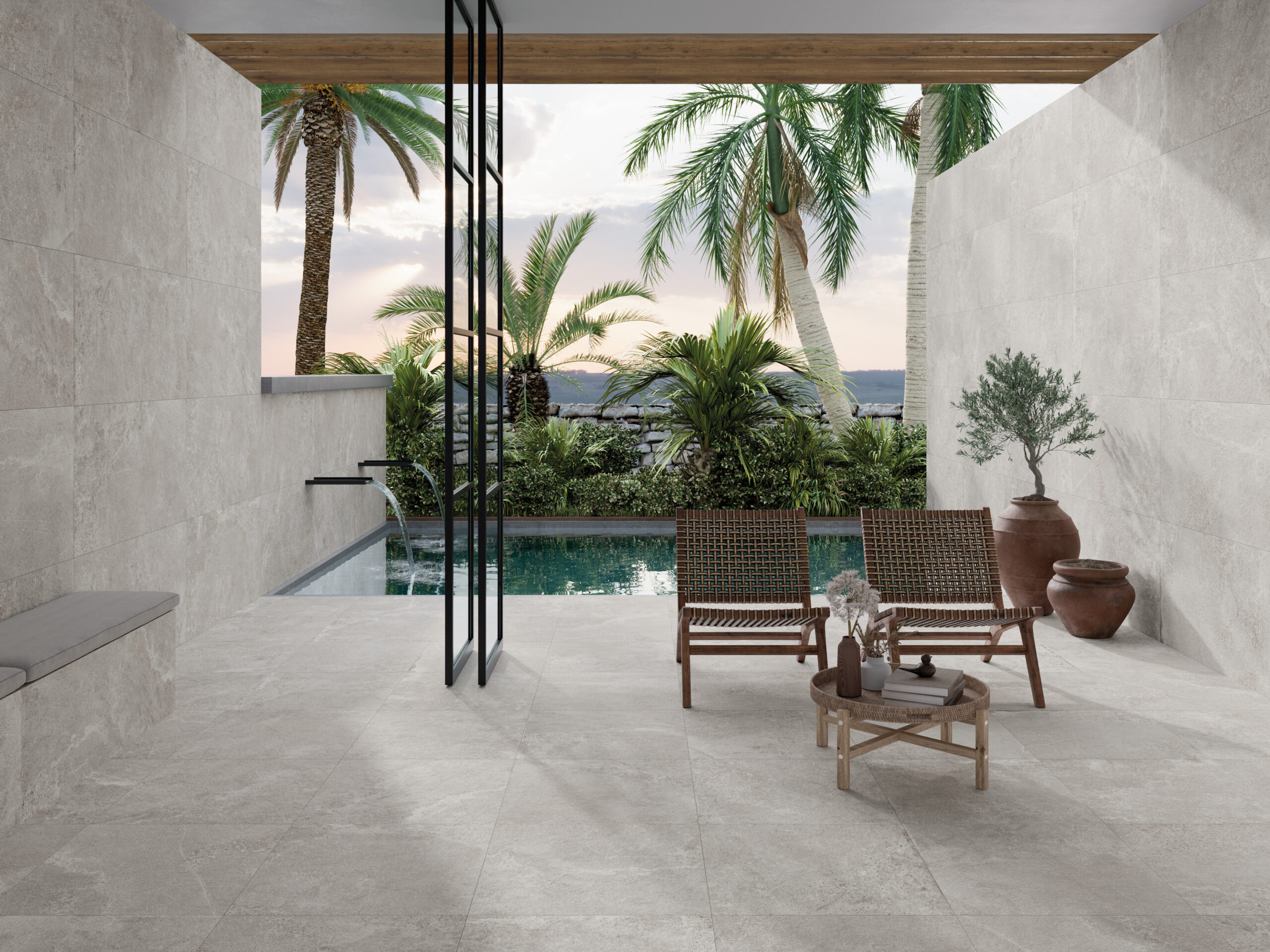 L’ardoise douce, sensuelle et élégante, à travers ses veines et ses couches, intensifie le caractère naturel de la pierre, ce qui donne l’élégante collection Northbay.