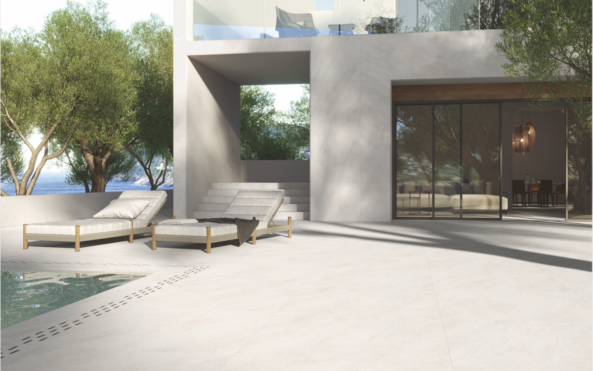 Disponible en trois teintes différentes, Blanc, Gris et Beige, et dans une grande variété de formats, aussi bien pour les espaces intérieurs qu’extérieurs (OUTDOOR 20).
